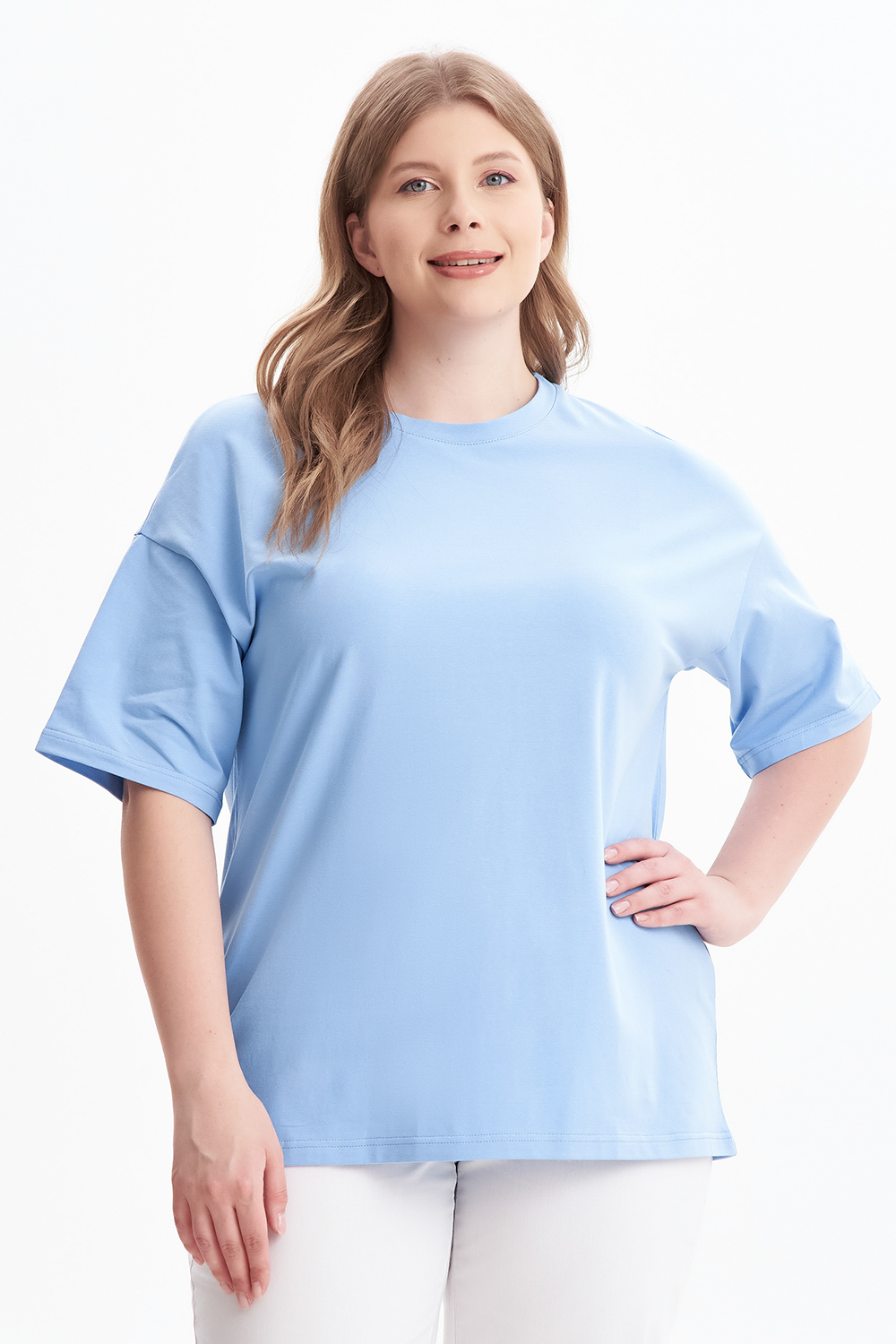 Женская туника больших размеров, выполнена из кулирки с лайкрой, свободного кроя. Длина по спинке во всех размерах 72см, длина рука...