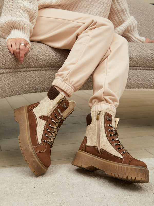Ботинки Makfly. Цвет: коричневый. Материал: войлок. Сезон: Осень-зима 2023/2024.