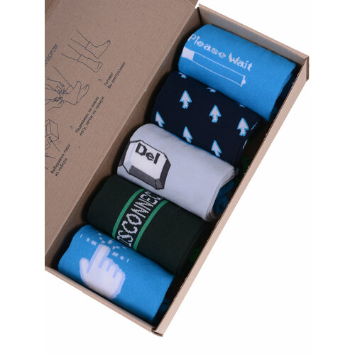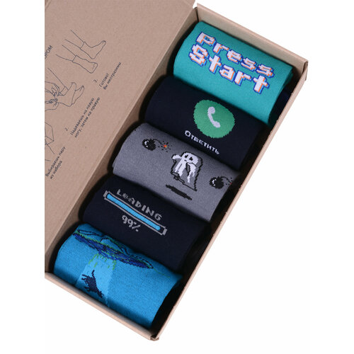 Носки MSCLUB, комплект, 5 пар, размер 27 (41-43), черный, серый, зеленый, голубой
