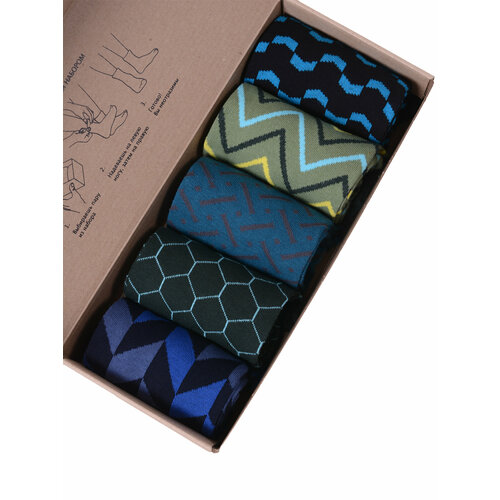 Носки MSCLUB, комплект, 5 пар, размер 29 (44-46), коричневый, серый, зеленый, желтый