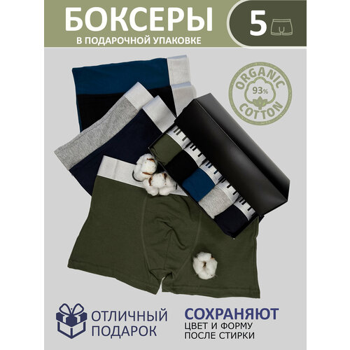 Трусы мужские, боксеры мужские набор 5 шт , хлопок 93% подарочная упаковка, комплект из 5 шт., размер 2XL, камуфляж Без бренда