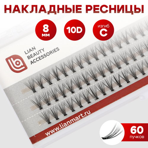Накладные пучки ресниц объем 10D, толщина 0.10 мм, изгиб С, длина 8 мм, 60 пучков, Lian Beauty Accessories 102020032967