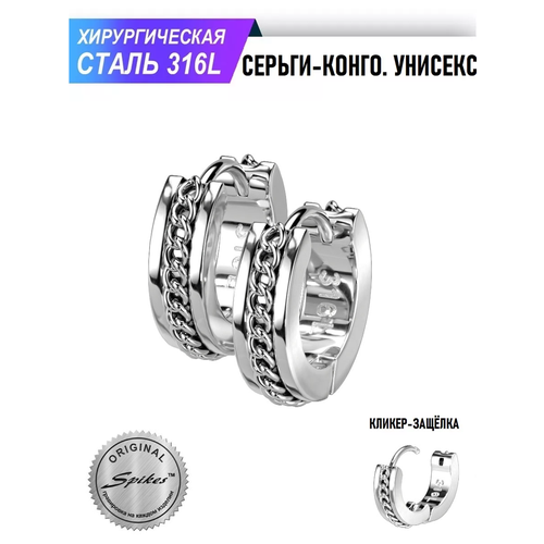 Серьги конго Spikes, размер 10 мм, серебристый