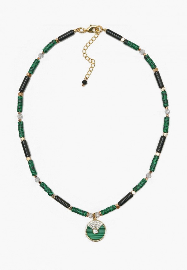 Колье RUSHEV, фианит, длина 50 см, зеленый/золотой